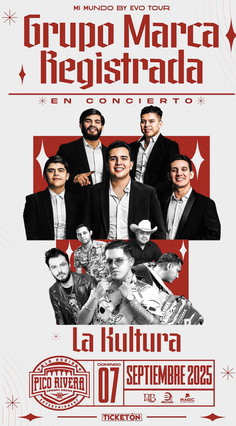 El concierto forma parte del “Mi Mundo by Evo Tour”, producido por RB Music, y se anticipa como una de las noches más importantes para la música regional en Estados Unidos. La Kultura promete una actuación que encenderá al público, preparando el escenario para la presentación de Marca Registrada, una de las agrupaciones más exitosas del género.